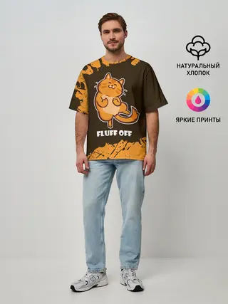 Мужская футболка оверсайз / КОТ - FLUFF OFF / Отвали