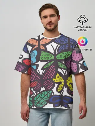 Мужская футболка оверсайз / Дудл бабочки