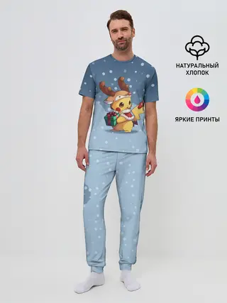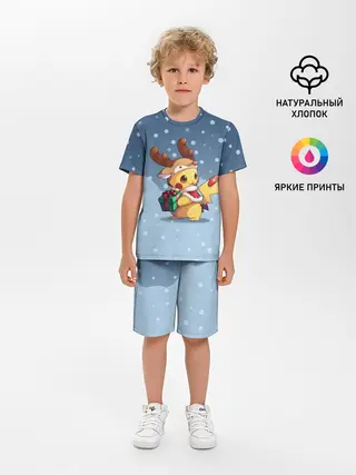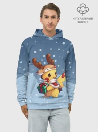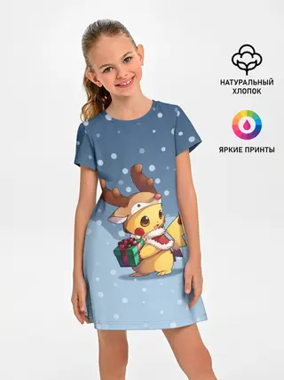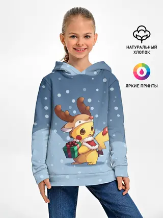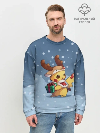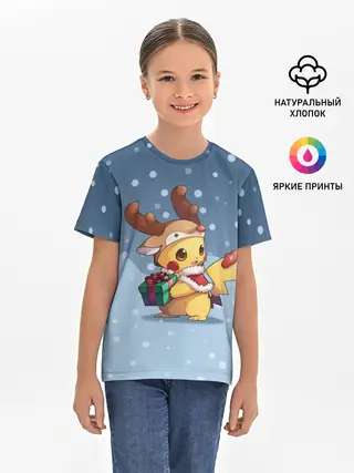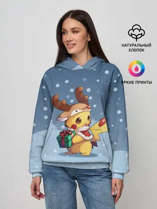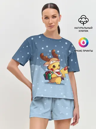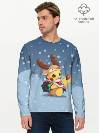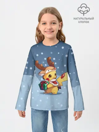 Лонгслив женский. Хлопок / Новогодний Пикачу