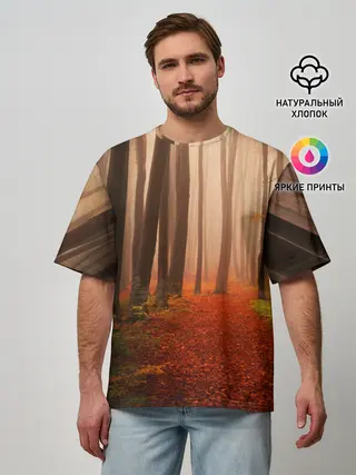 Мужская футболка оверсайз / Осенний лес