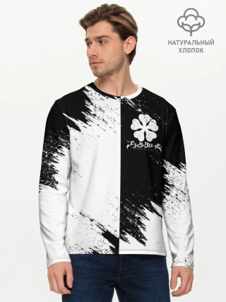 Мужской лонгслив базовый / Черный Клевер инверсированный фон