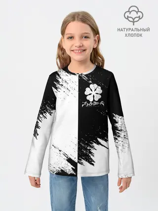 Детский лонгслив / Черный Клевер инверсированный фон