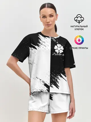 Женская футболка оверсайз / Черный Клевер инверсированный фон