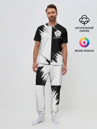 Мужская пижама с брюками / Черный Клевер инверсированный фон