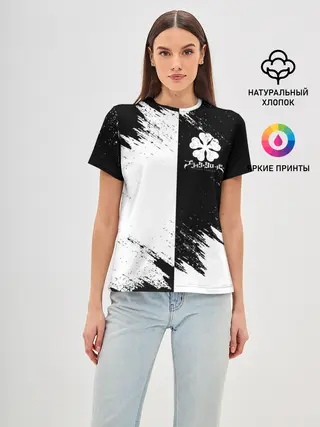Женская базовая футболка / Черный Клевер инверсированный фон