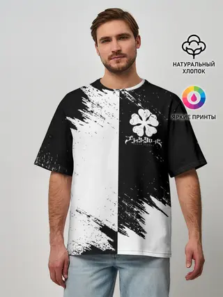 Мужская футболка оверсайз / Черный Клевер инверсированный фон