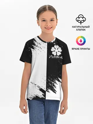 Детская базовая футболка / Черный Клевер инверсированный фон