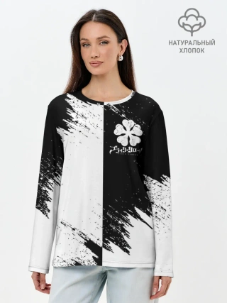 Лонгслив женский. Хлопок / Черный Клевер инверсированный фон
