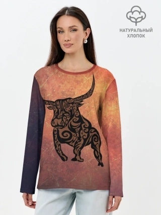 Лонгслив женский. Хлопок / Символ года 2021 Бык