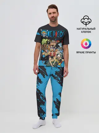 Мужская пижама с брюками / One Piece синий всплеск