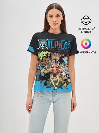 Женская базовая футболка / One Piece синий всплеск