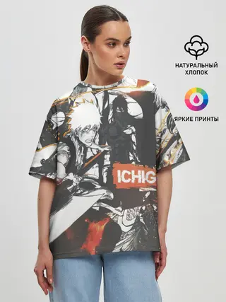 Женская футболка оверсайз / Bleach Блич Ичиго Курасаки