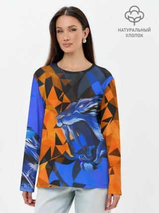 Лонгслив женский. Хлопок / Тигр