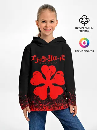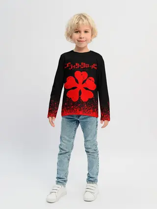 Детский лонгслив / Красный логотип Черный клевер на черном