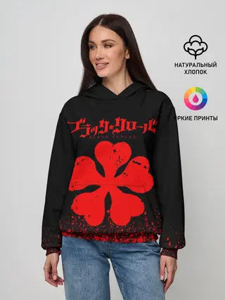 Женская футболка оверсайз / Красный логотип Черный клевер на черном