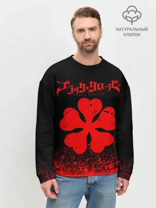 Мужской свитшот базовый / Красный логотип Черный клевер на черном