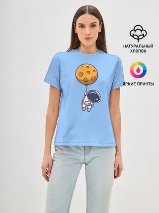 Лонгслив женский. Хлопок / Космонавт с шариком