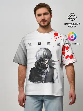 Мужская футболка оверсайз / Kaneki Ken красные капли