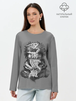 Лонгслив женский. Хлопок / JUJUTSU KAISEN ИТАДОРИ иероглифы