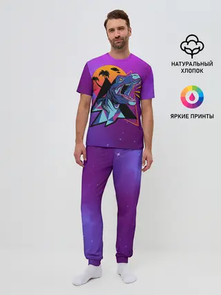 Мужская пижама с брюками / Retrowave Neon Dinosaur