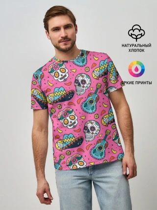 Мужская базовая футболка / День Мёртвых узор из черепов