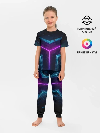 Детская пижама с брюками / Неоновые грани 3D