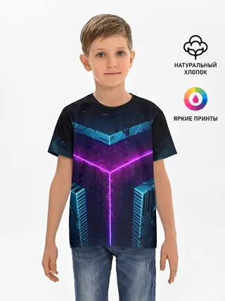 Детская базовая футболка / Неоновые грани 3D