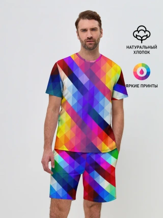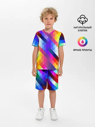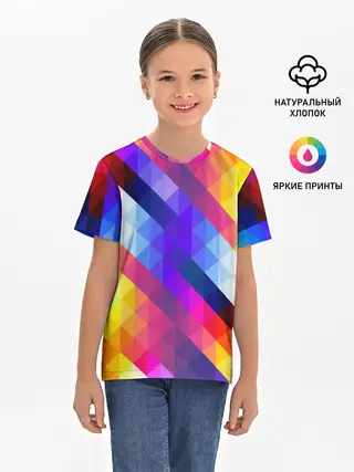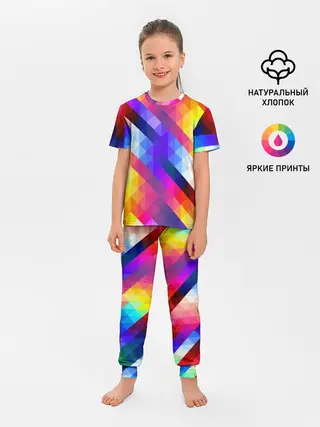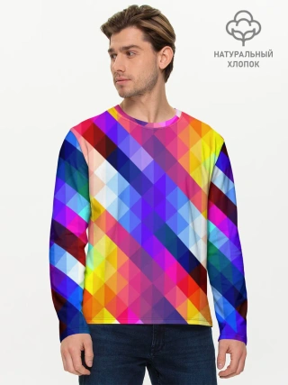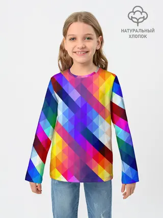 Лонгслив женский. Хлопок / Пиксельная радуга
