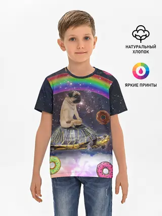 Детская пижама с брюками / Мопс на черепахе в космосе