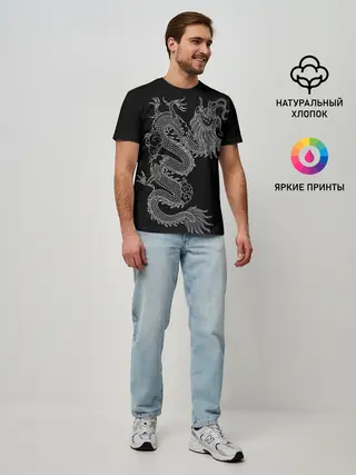 Мужская базовая футболка / ЧБ Дракон