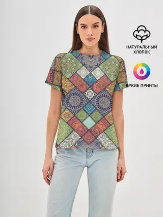 Женская базовая футболка / ЛОСКУТНАЯ ВЫШИВКА