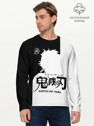 Мужской лонгслив базовый / Черно белый силуэт Танджиро