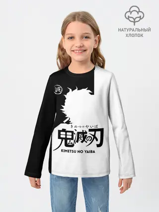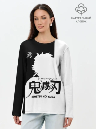 Лонгслив женский. Хлопок / Черно белый силуэт Танджиро