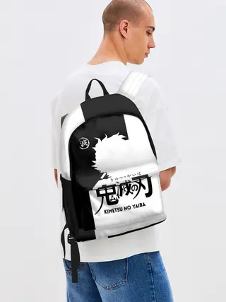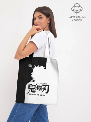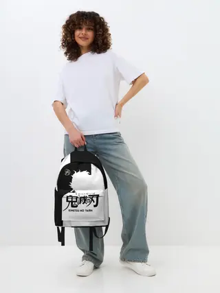 Рюкзак джинсовый / Черно белый силуэт Танджиро