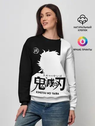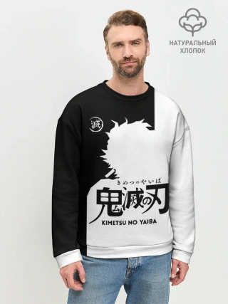 Мужской свитшот базовый / Черно белый силуэт Танджиро