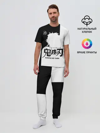 Мужская пижама с брюками / Черно белый силуэт Танджиро