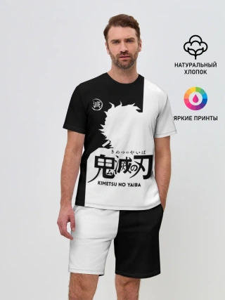 Мужской костюм с шортами / Черно белый силуэт Танджиро
