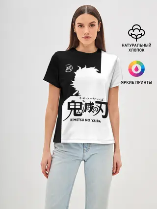 Женская базовая футболка / Черно белый силуэт Танджиро