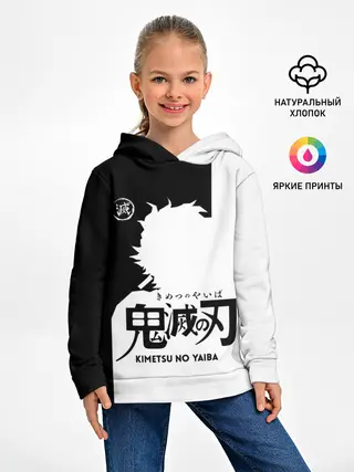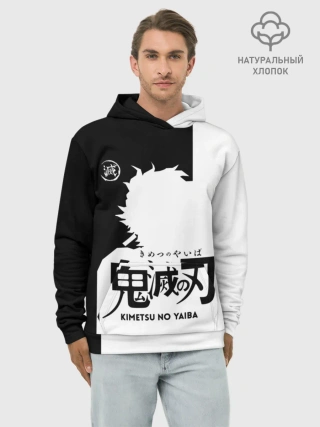 Худи мужской база хлопок / Черно белый силуэт Танджиро