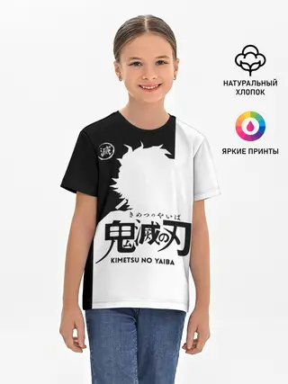 Детская базовая футболка / Черно белый силуэт Танджиро