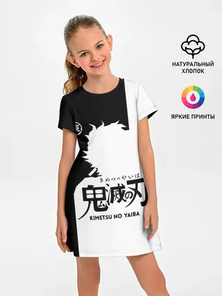 Детская пижама с брюками / Черно белый силуэт Танджиро