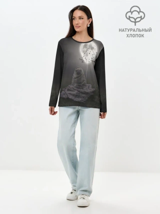 Лонгслив женский. Хлопок / Мопс и луна