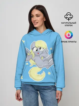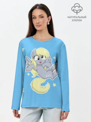 Лонгслив женский. Хлопок / Пони в звёздном небе