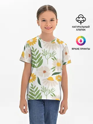 Детская базовая футболка / Цветы и листья