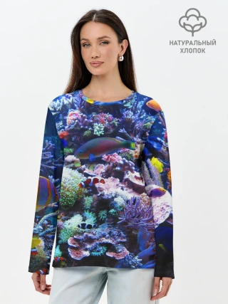 Лонгслив женский. Хлопок / Коралловые рыбки