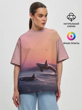 Женская футболка оверсайз / касатки
