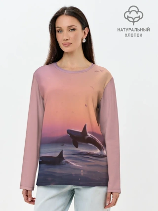 Лонгслив женский. Хлопок / касатки