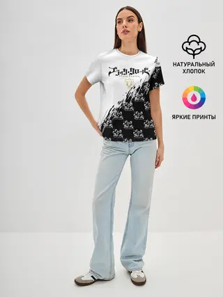 Женская базовая футболка / Чёрный клевер черно-белый разрыв
