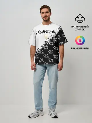 Мужская футболка оверсайз / Чёрный клевер черно-белый разрыв