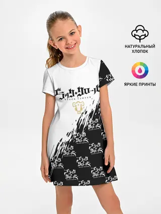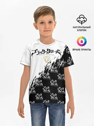 Детская базовая футболка / Чёрный клевер черно-белый разрыв